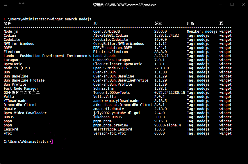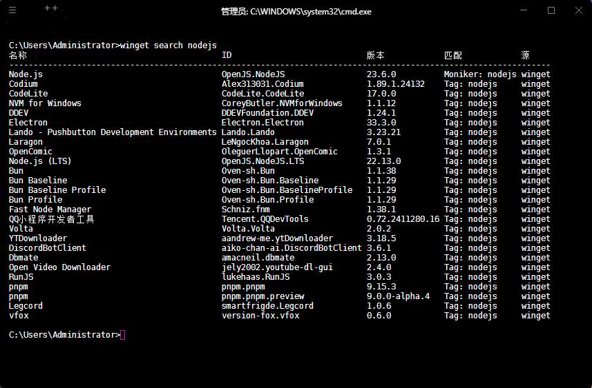 winget search nodejs1