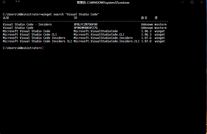 - 使用 winget 命令进行安装: