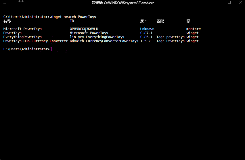 - 示例:安装 powertoys(需要精确匹配)