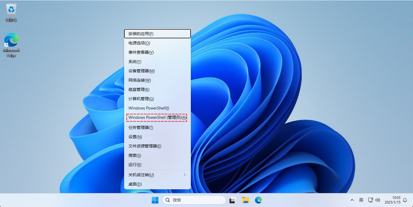 win + x快捷键,选择Windows PowerShell(管理员):