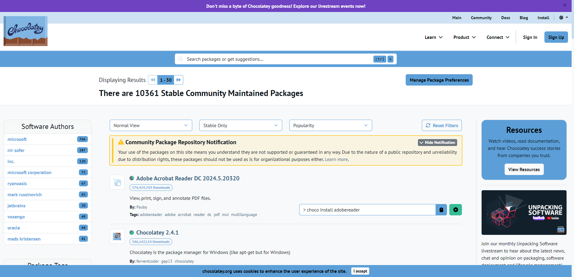 - Chocolatey 是长期流行的第三方软件包管理器,支持许多开发工具、服务和常见软件,其还提供商业版支持。
