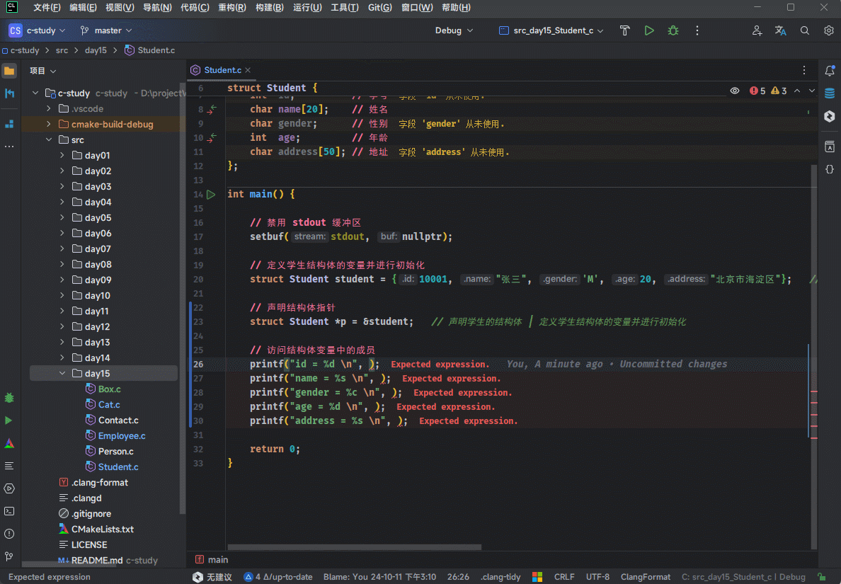 CLion 中是有技巧的,直接通过结构体指针.成员会将其转换为结构体指针 -> 成员,如下所示: