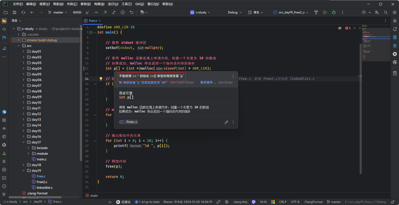 - ② C 语言没有内置动态数组,需要我们通过动态内存分配函数手动实现。